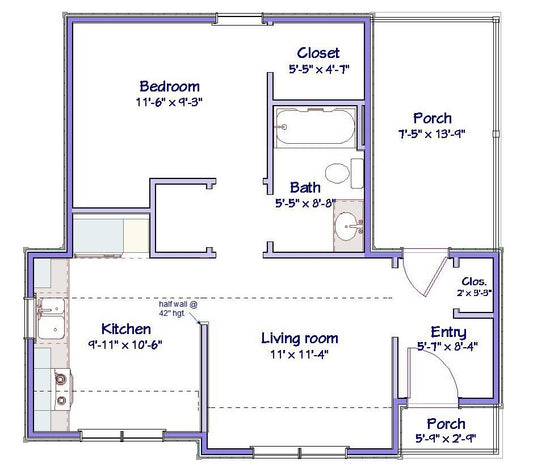 Claremont Cottage Plan - 580 sq. ft.