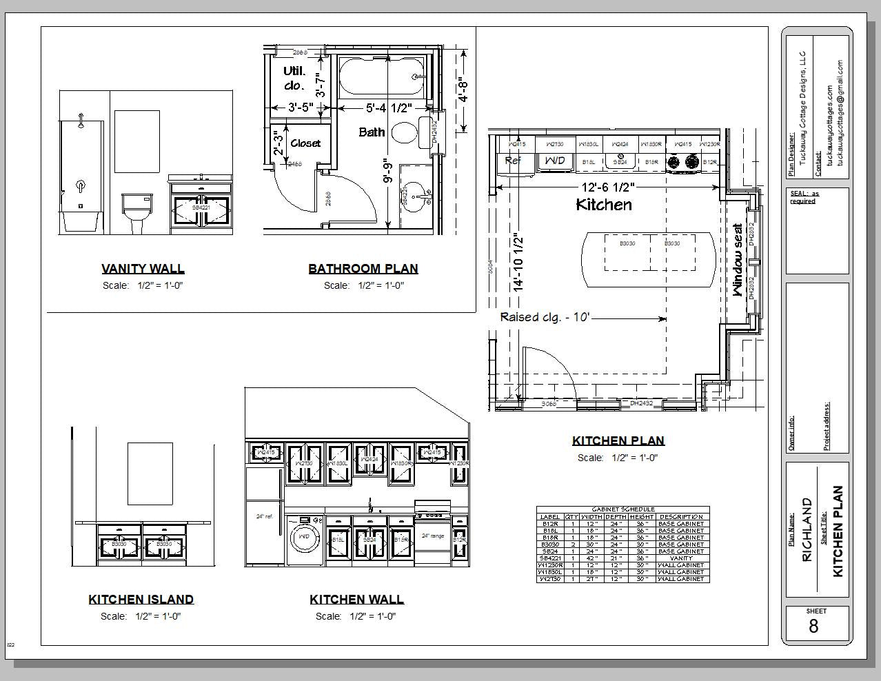 - Kitchen island plan at 1/2" scale (for those cottages that include an island)